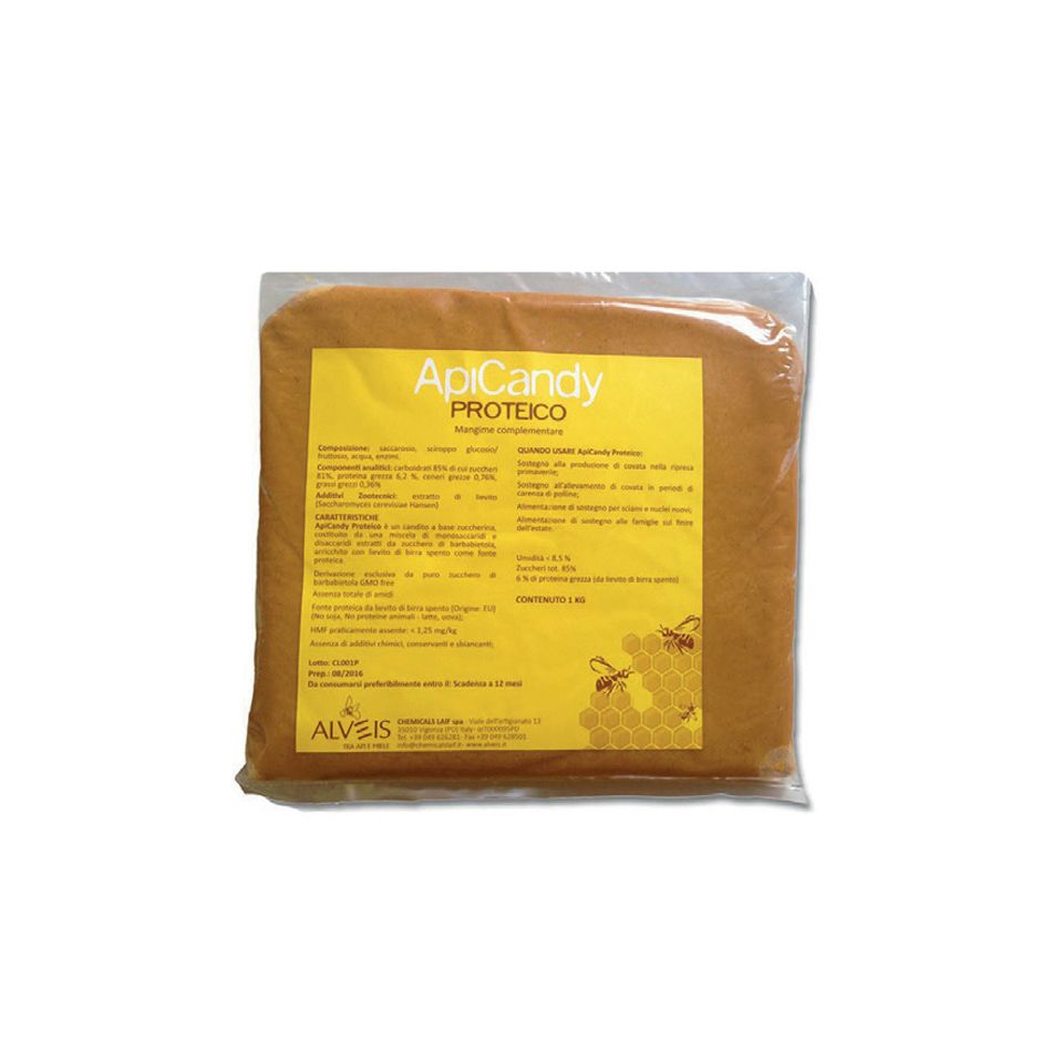 Apicandy proteico alimentazione di sostegno composto da materie prime di provenienza europea, non OGM, senza additivi o conservanti.