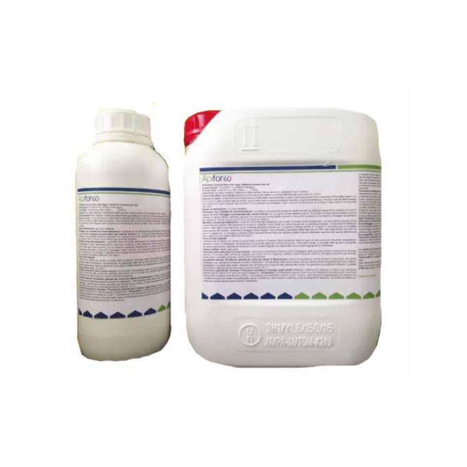 Api For 60 Api For 60 è un medicinale veterinario per apicoltura a base di acido formico contro la varroa. Somministrare mediante dosatori idonei (art. 2463) con temperature comprese tra 10 e 30° e in assenza di melario. EANArticoloDescrizione 80001304073826063Api For 60 in confezione da 1 lt 80001304073996064Api For 60 in confezione da 5 lt Richiedi Informazioni